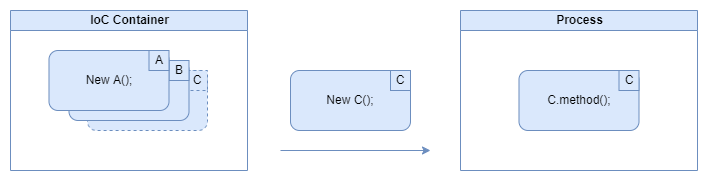 한 클래스에서 다른 클래스의 객체를 사용할 때, 그 클래스 자체가 아닌 프레임 워크로부터 객체를 받는 방식의 디자인 패턴으로, 위의 제어 역전에서의 ‘객체를 불러온다’는 부분을 담당하는 제어 역전의 하위 개념이다.